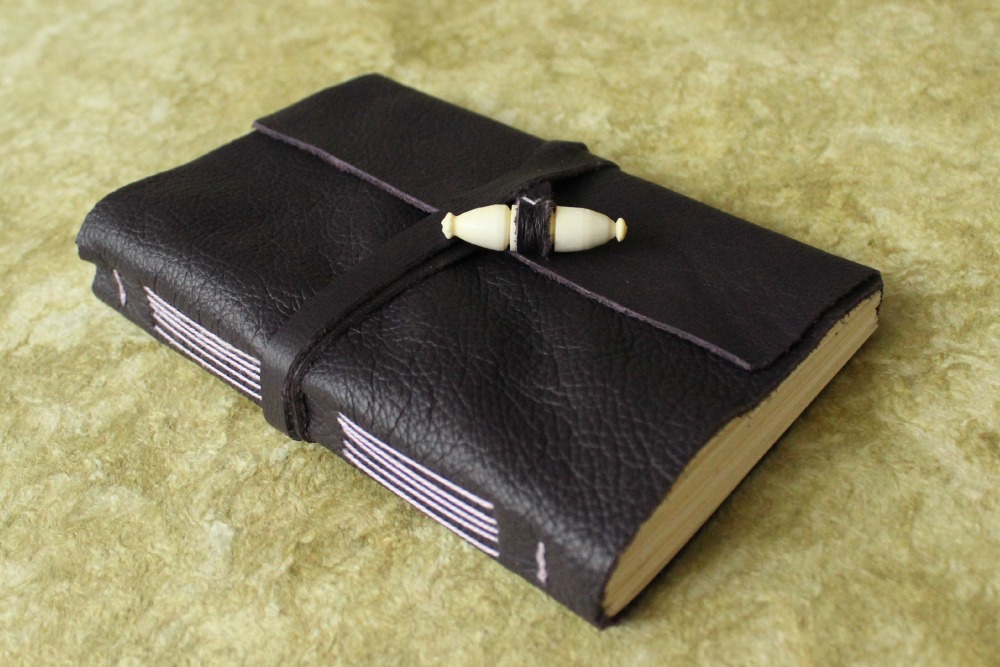 - Leather journal with crossed stitch